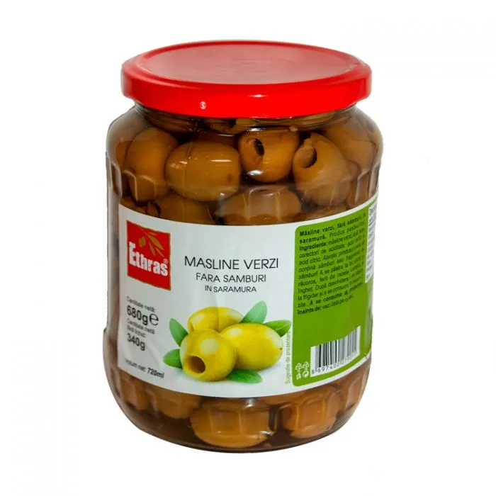 Оливки Ethras зеленые без косточки 680 гр Стеклянная банка