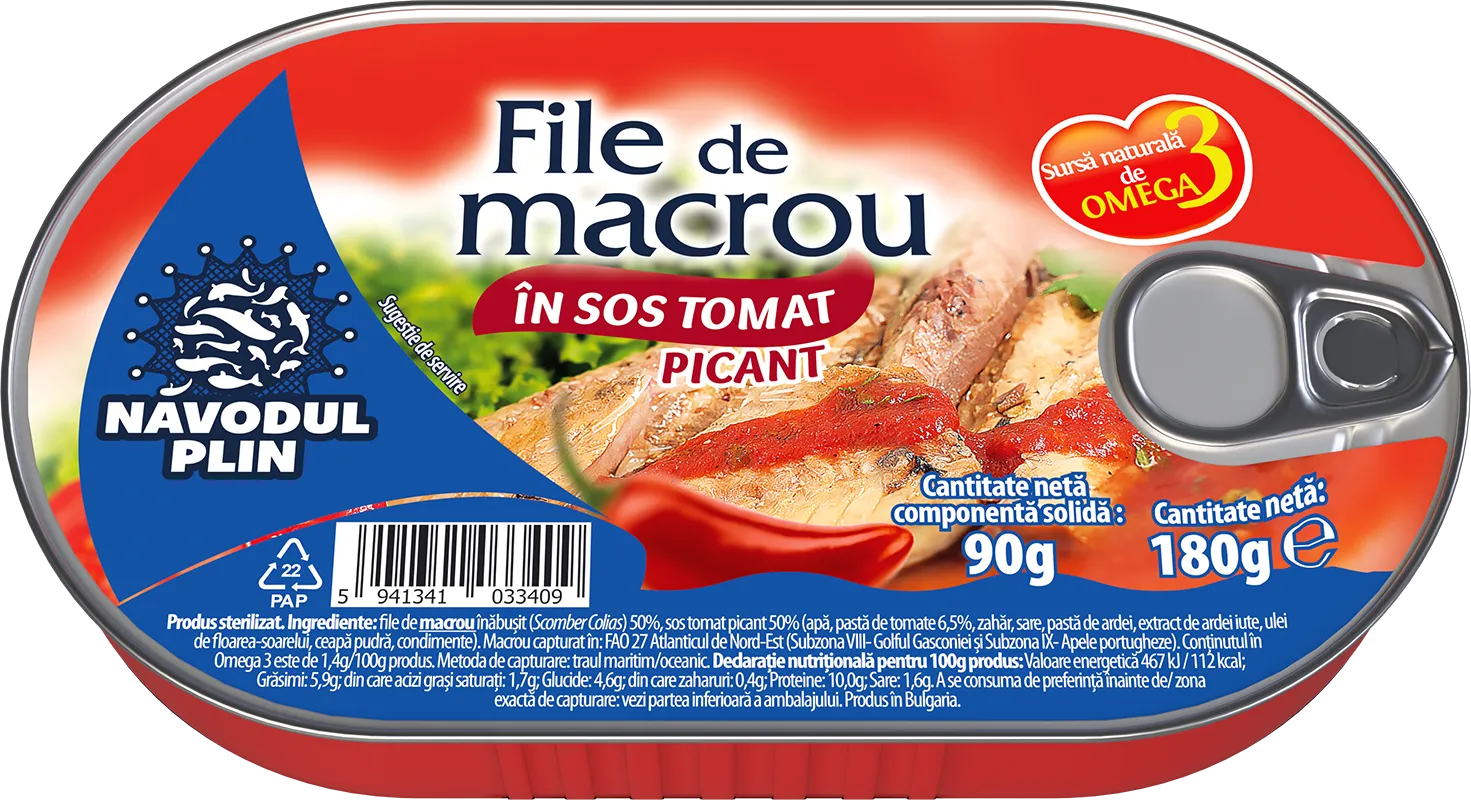 Navodul Plin Филе скумбрии 170г с овощами в томатном соусе