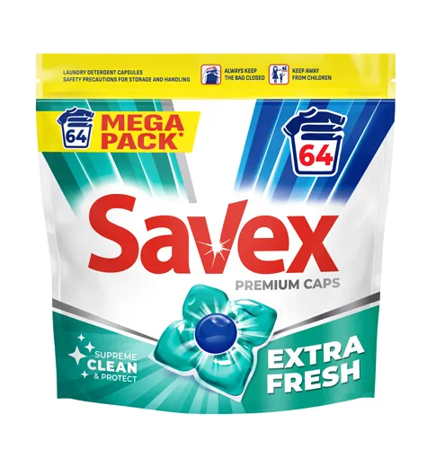 Savex Premium Caps Fresh обеспечивает мощную стирку, сохраняя цвет одежды от стирки к стирке.