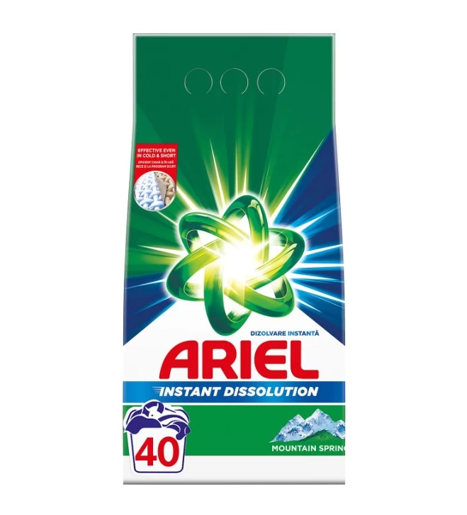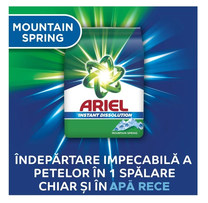 Благодаря своей концентрированной формуле порошок Ariel Mountain Spring теперь обеспечивает большую чистящую способность и отстирывает больше белья на килограмм, безупречно удаляя пятна за одну стирку и защищая цвета. Благодаря уникальной технологии мгновенного растворения порошок быстро растворяется при контакте с водой и проникает глубоко в волокна, даже при стирке в холодной воде.