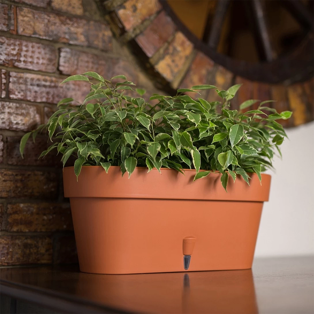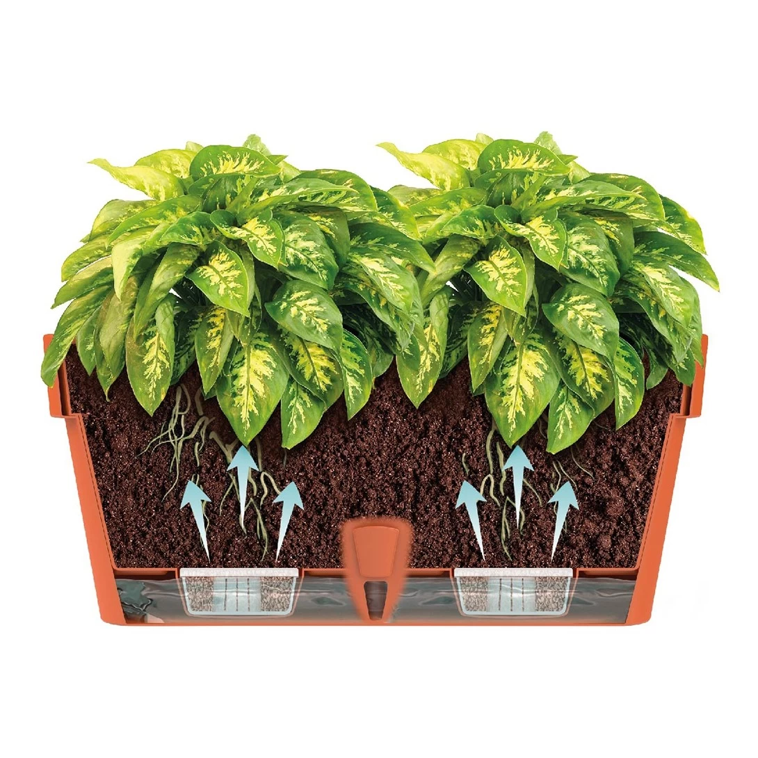 Ящик Latina Window Box оснащен прозрачным окошком для контроля уровня воды и люком для полива, предназначенным для растений, предпочитающих полив непосредственно под корень. Он поддерживает достаточный уровень влажности в течение 4 недель.