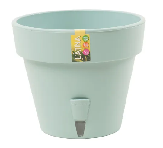 Santino представляет самонесущий горшок Latina, изготовленный из прочного пластика и подходящий для выращивания различных видов растений. Он имеет гладкую поверхность и близко имитирует керамику.