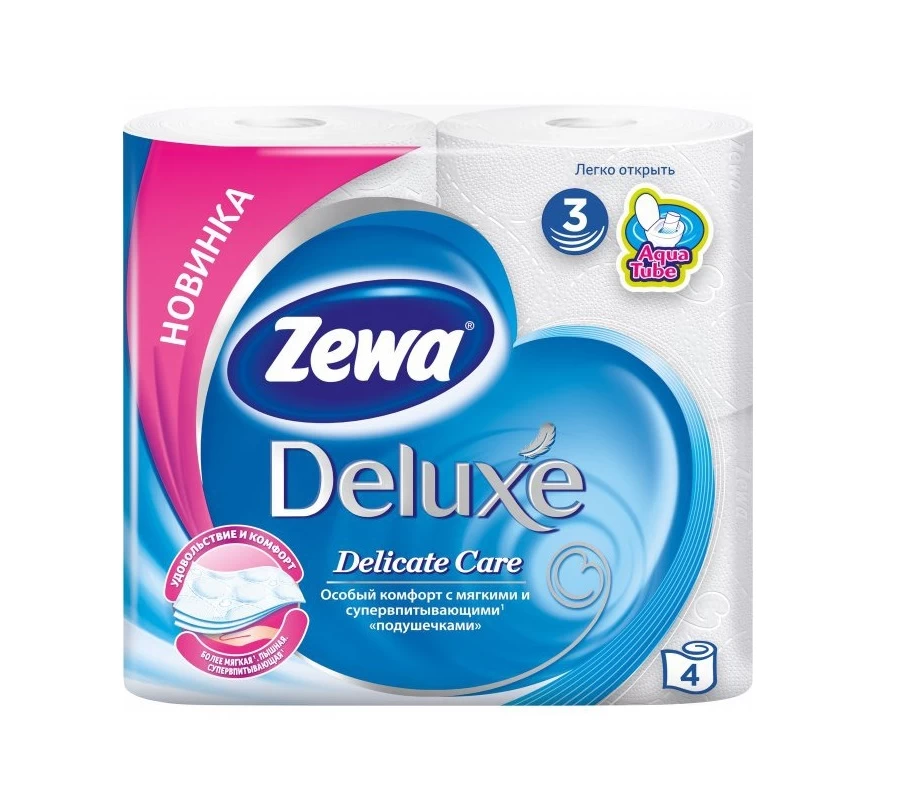 - Туалетная бумага Zewa Deluxe Deluxe Delicate Care 3 слоя, 4 рулона