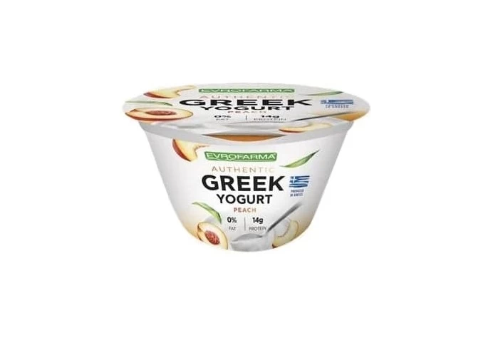 - Еврофарма Йогурт греческий 0% с персиком 150г