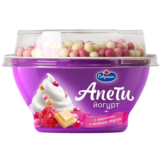 - Йогурт густой Савушкин с рисовыми шариками с ягодным вкусом 5% 105г Савушкин