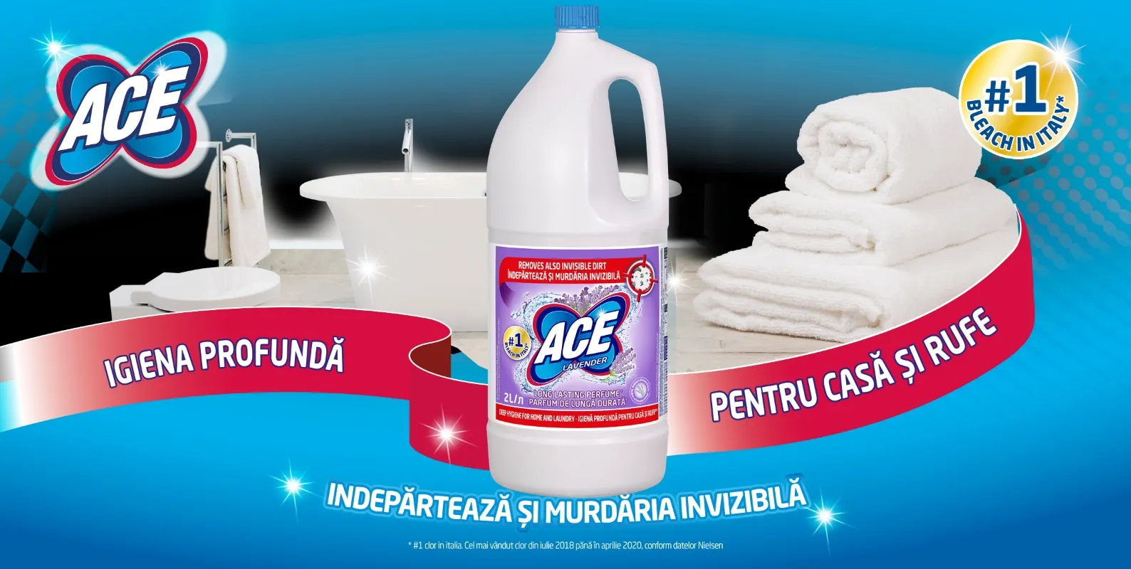 АCE это отбеливатель нового поколения, не требует вываривания. А благодаря специальным веществам, предотвращающие порчу ткани АCE эффективно отбеливает не только хлопчатобумажные, но и синтетические ткани.