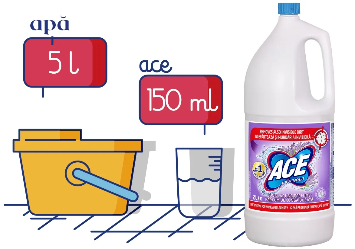 Жидкий отбеливатель ACE 2L LAVENDER является одним из самых эффективных жидких отбеливателей в мире. Он содержит добавки, защищающие ткань от повреждения и поэтому отбеливают лучше и бережнее, чем другие жидкие отбеливатели. АСЕ эффективно удаляет пятна от чая, вина, черники, фруктов и кофе, пятна органического происхождения, а также восстанавливает белье застиранных тканей.