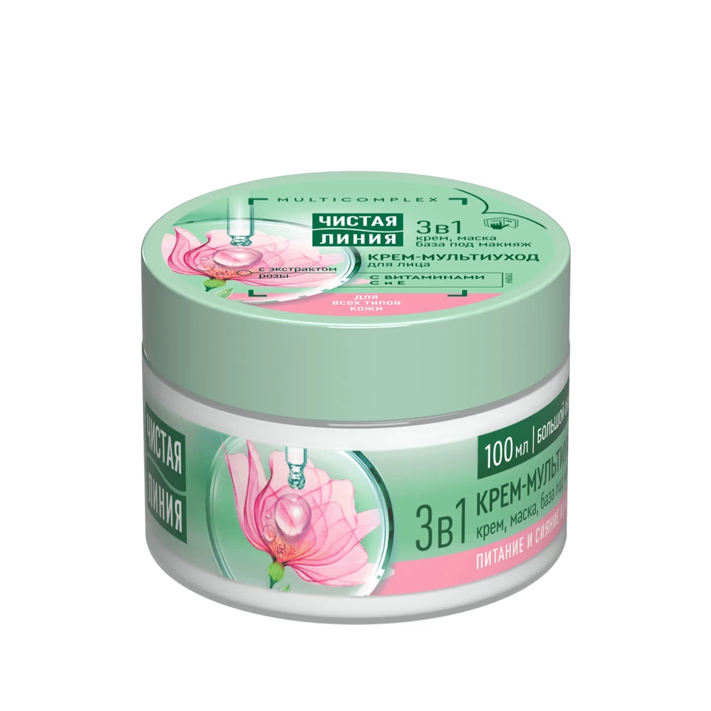 Если вы хотите, чтобы лицо выглядело сияющим и ухоженным, попробуйте новинку от бренда Чистая Линия – крем-мультиуход для всех типов кожи, в том числе и для чувствительной. Продукт соединяет в себе сразу три средства и может быть использован как крем (нанесите на очищенную кожу лица и шеи), маска (при нанесении плотным слоем на 5-7 минут) и база под макияж. Невероятно удобно, если вы хотите пользоваться качественным уходовым средством, но при этом не загромождать туалетный столик или если находитесь вне дома и не имеете возможности взять всю косметику с собой.