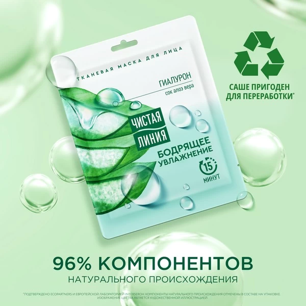 Маска Бодрящее увлажнение от Чистой линии с 80% вытяжкой алоэ вера и аква-сывороткой всего за 15 мин сделает вашу кожу мягкой, гладкой и красивой. Маска содержит 96% компонентов натурального происхождения.