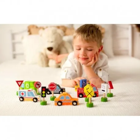 Набор "Транспортные средства и дорожные знаки" от Tooky Toy - это отличный способ изучить правила движения на дороге. В набор входят 6 различных транспортных средств и 9 дорожных знаков. Играя, ребенок выучит дорожные знаки, а красочные транспортные средства сделают это увлекательным занятием. Все сделано из высококачественных материалов и окрашено нетоксичными красками, безопасными для детей и окружающей среды.