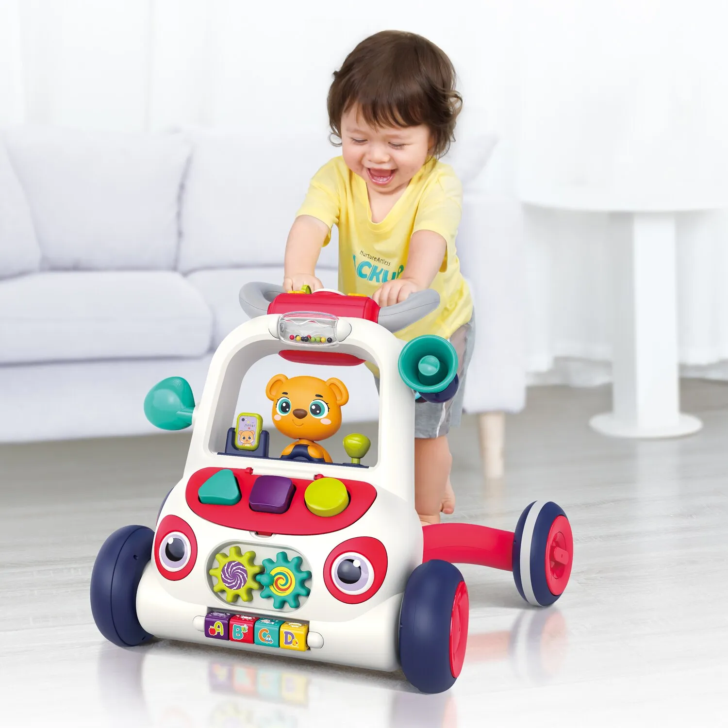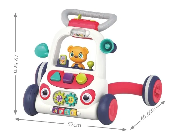 Он выполняет две функции: основную - развивает ходьбу малыша, поддерживая равновесие, и вторую - как "интерактивная игрушка", которая развивает слуховые ощущения с помощью разноцветного пианино и зрительные ощущения, логическое мышление, а также моторику рук и пальцев с помощью интерактивных форм и ярких цветов.
