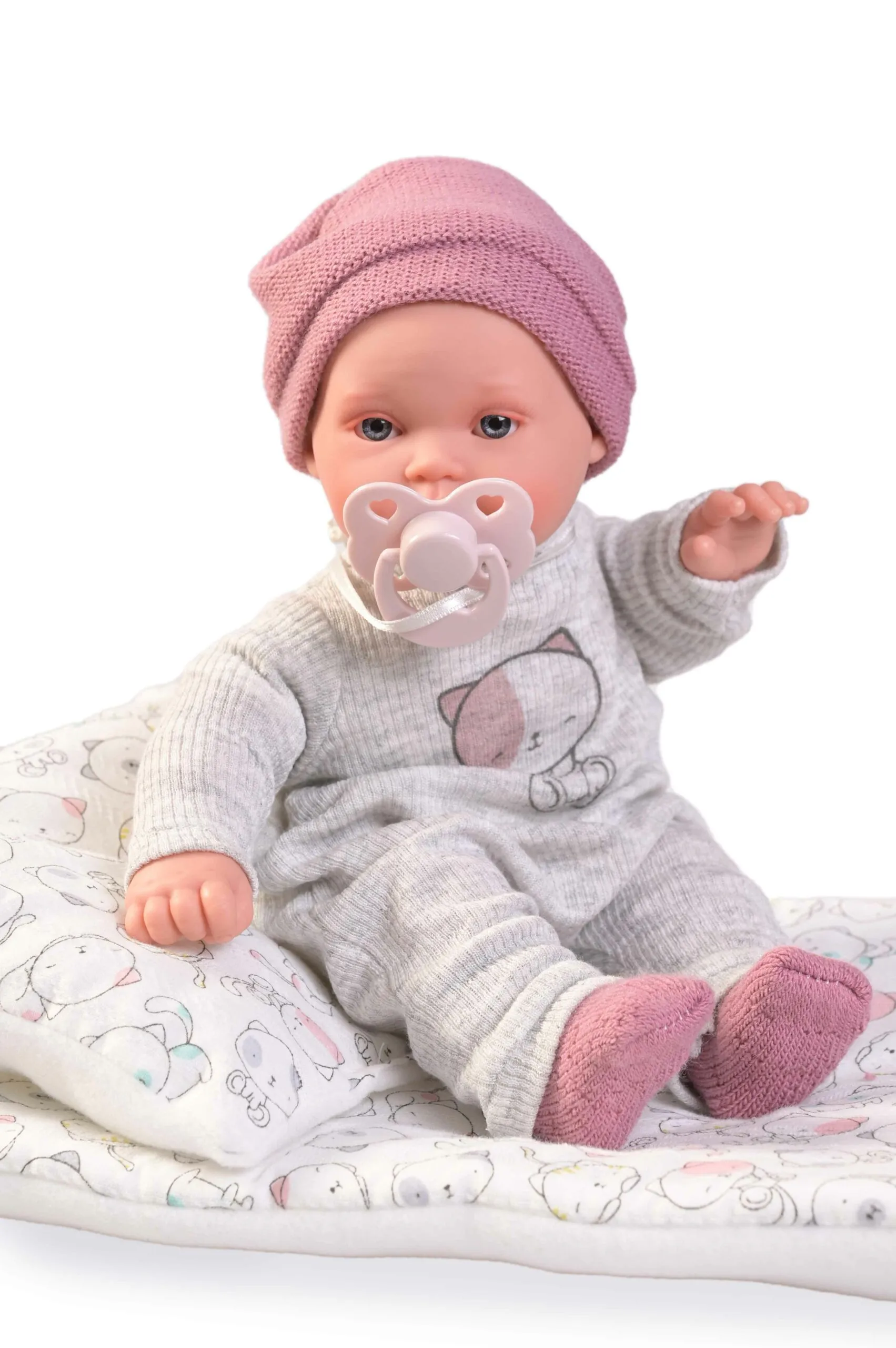 - Antonio Juan Кукла-младенец Кика в комбинезоне с котиком, 27 см, код 46443