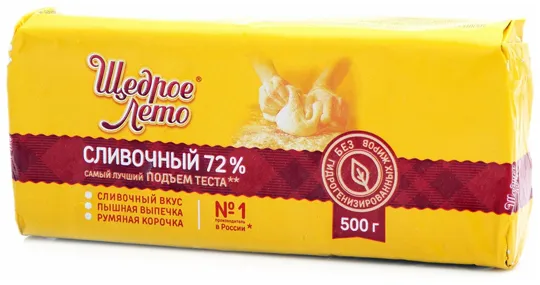 Сливочный 72% маргарин ГОСТ ISO 9001-2011 Сливочный вкус, пышная выпечка, румяная корочка, Универсальное решение в кулинарии! Идеально подходит для бутербродов, любых видов выпечки и заправки вторых блюд.
