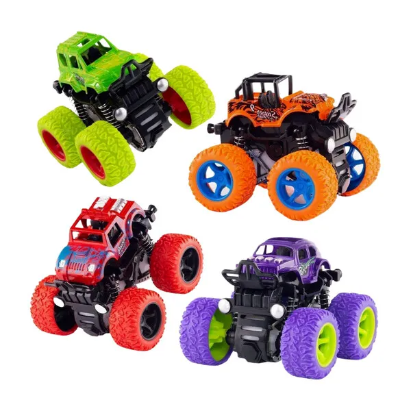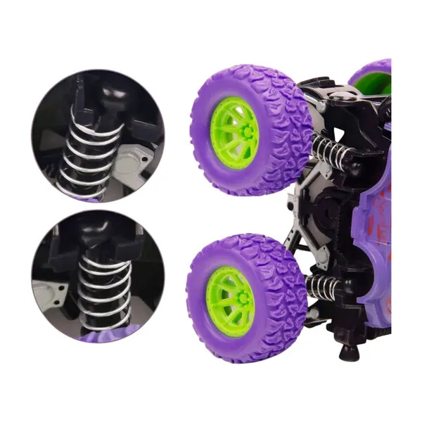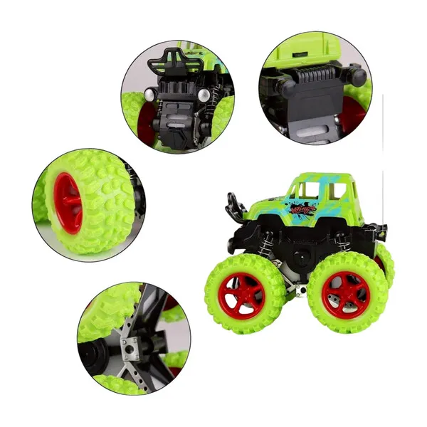 Корпус внедорожника сделан из высококачественного пластика, колёса – из резины, а также машина обладает мощными рессорами. Особенностью внедорожника является то, что машинка фрикционная, и для движения необходимо откатить назад и отпустить. Пружины амортизации подвижны и могут сжиматься и разжиматься.