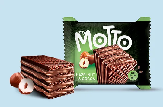 В каждой пачке 2 аппетитные Вафли Italfood MyMotto Орех и какао 34 г.