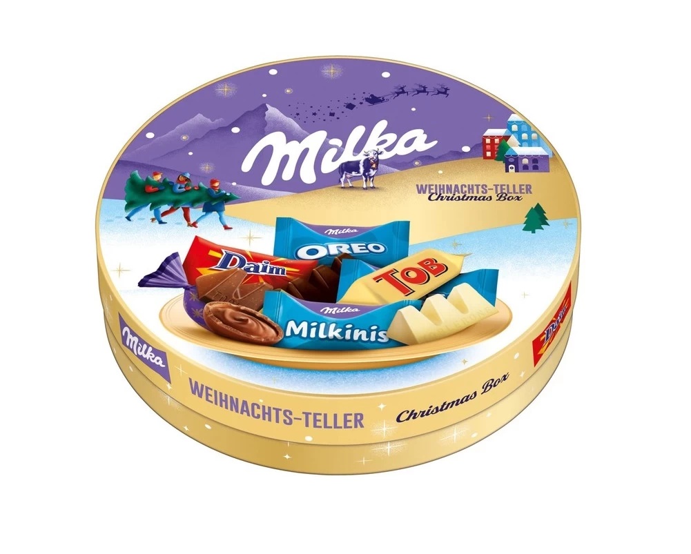 Великолепное сочетание конфет Milka, Daim, Oreo и Toblerone. Рождественские продукты. Практичная упаковка идеально подходит в качестве тарелки, поэтому ее можно легко подать на стол. Идеально подходит для любого адвент-кофе. В состав смеси Milka & Friends входят следующие вкусы: