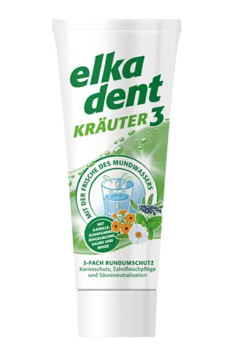 зубная паста elka dent 3 KRÄUTER со свежестью ополаскивателя для полости рта.