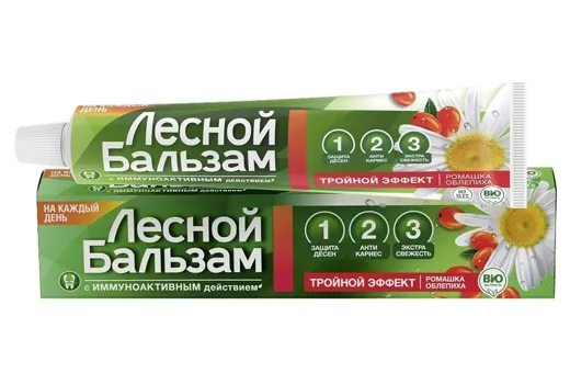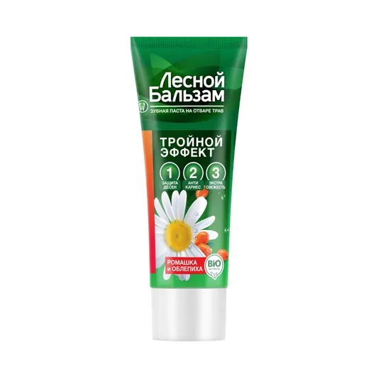 - Лесной Бальзам зубная паста на отваре трав Тройной эффект с ромашкой и облепихой 75мл