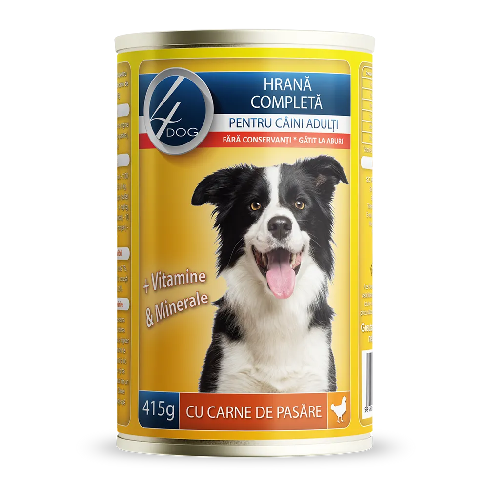 4DOG Консервы Курица 415г - полнорационный корм для взрослых собак с мясом курицы.