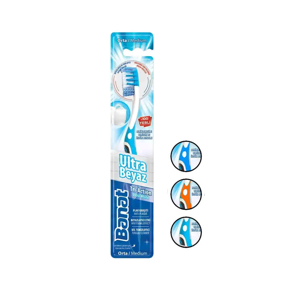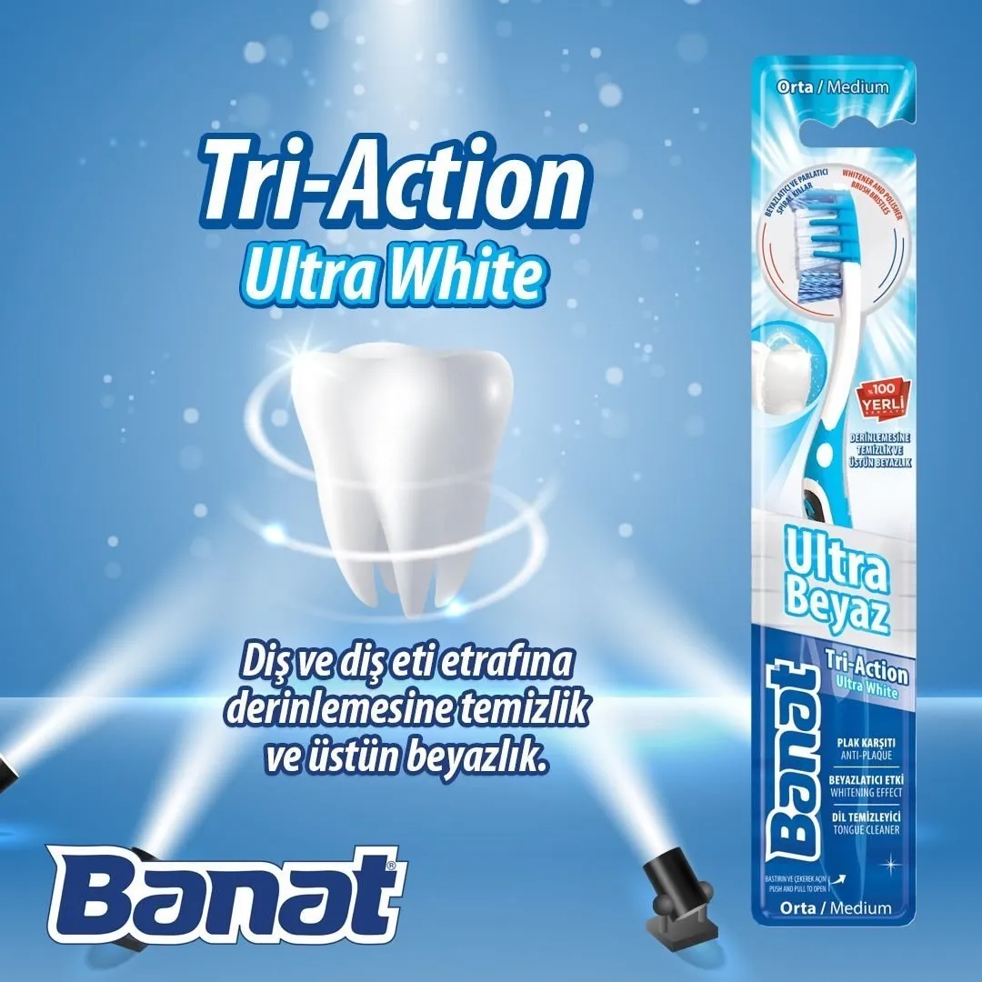 Banat Зубная щетка Tri Action Ultra White Medium, со средними щетками