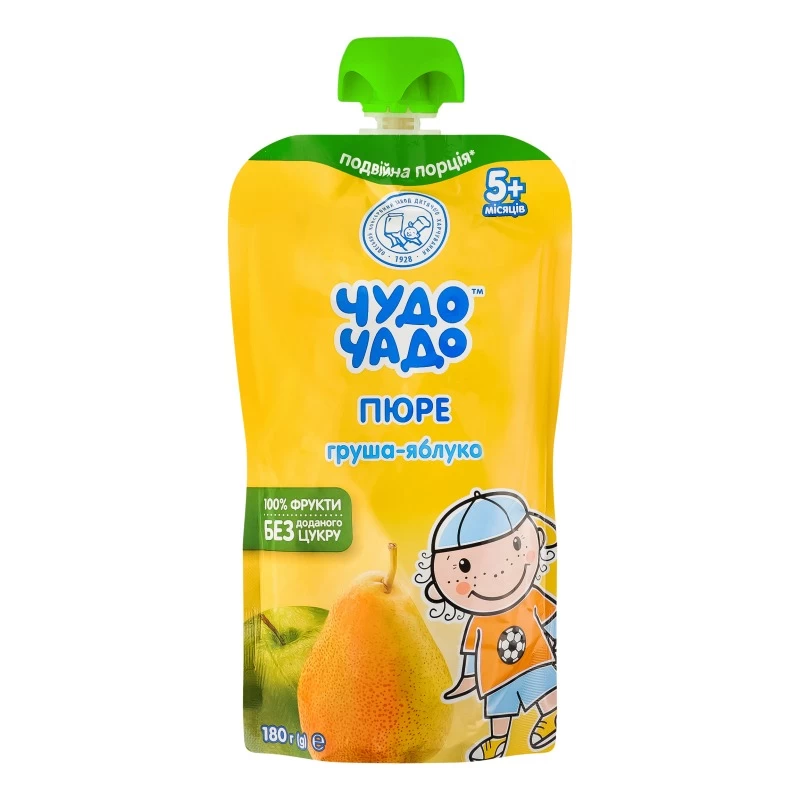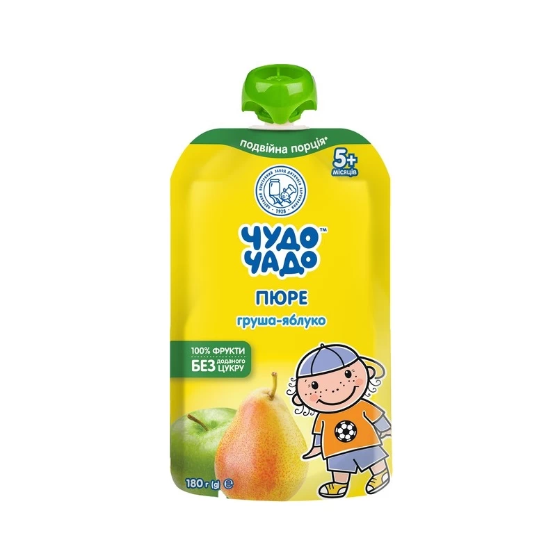 Натуральное и безопасное детское пюре Чудо-Чадо от ОКЗДХ - производителя с многолетней историей, опытом и традициями контроля качества. Изготавливается из лучших сортов украинских груш и яблок собственной переработки без добавления сахара, с заботой об уверенности в здоровом питании детей.