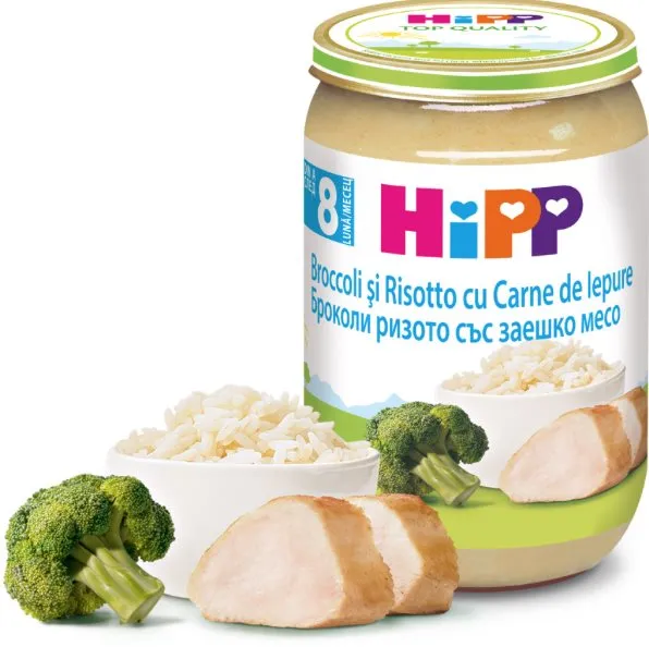- HIPP Пюре из брокколи с рисом и кроликом 8 месяцев 220 гр