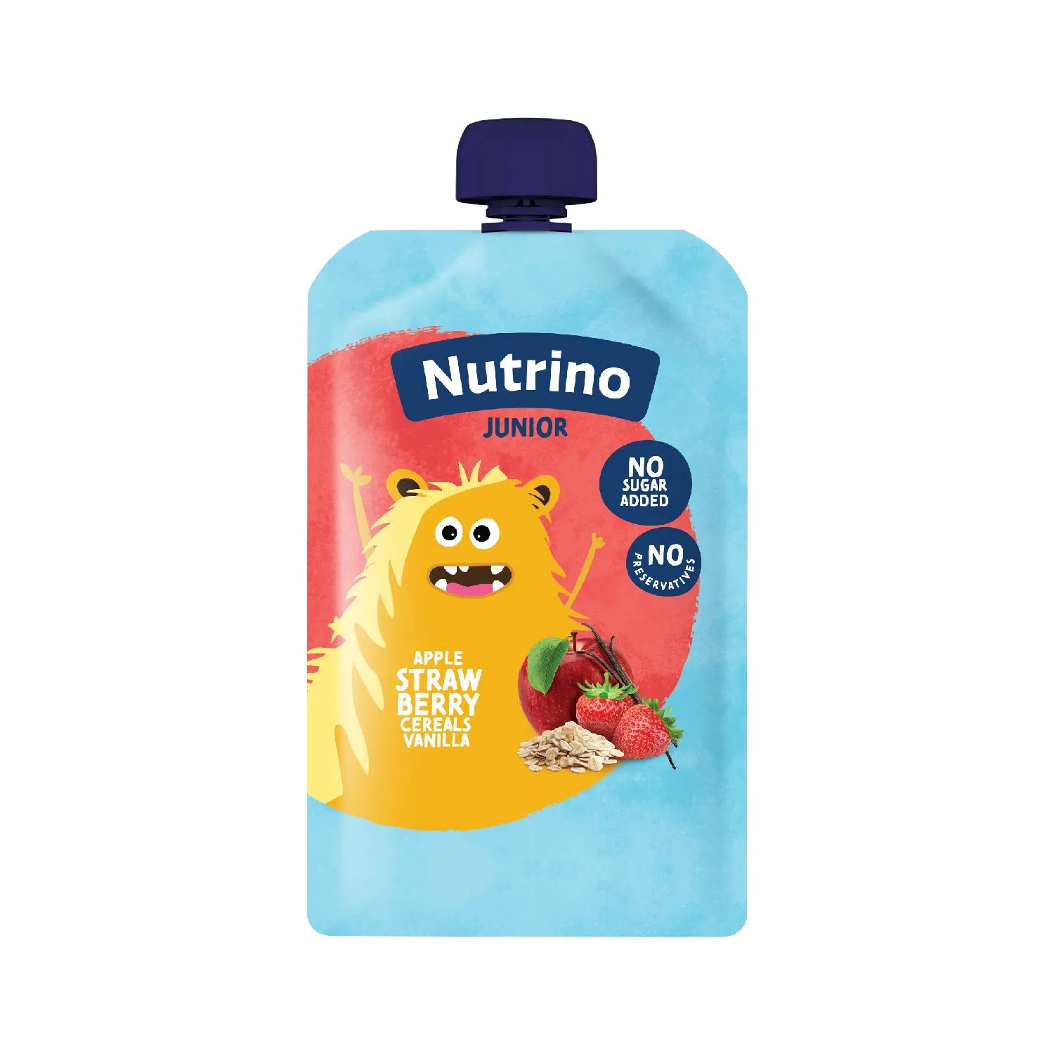 - Пюре Nutrino Junior Яблоко, Клубника, Злаки, Ваниль Печенье 180г