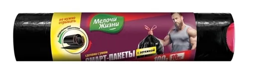 Пакеты для мусора Мелочи Жизни Смарт имеют затяжки и предназначены для удобного хранения и выноса мусора. Пакеты для мусора прочные имеют уникальную функцию "СМАРТ" - пакеты составлены в рулоне отдельно, не нужно отрывать.