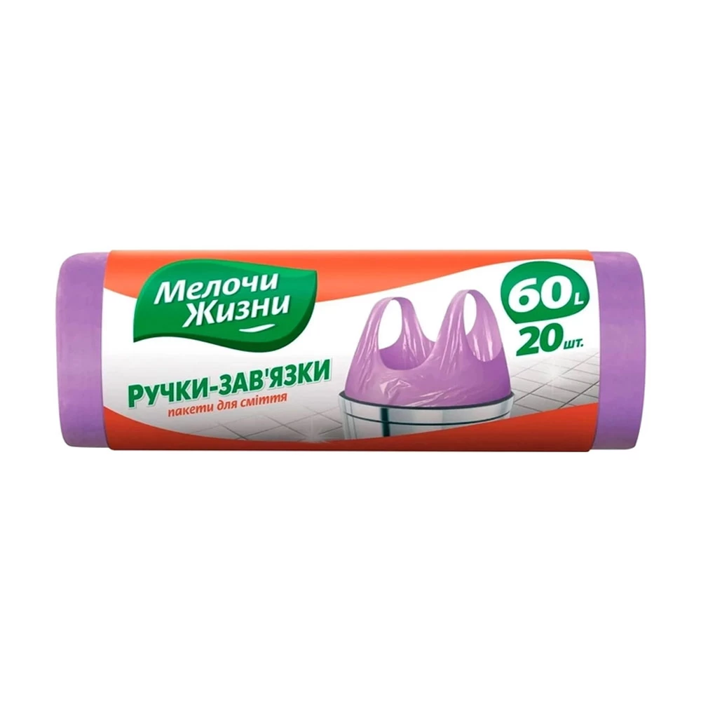 - Мелочи Жизни Мусорные пакеты c ручками-завязками Cтандарт 60 л, 20 шт