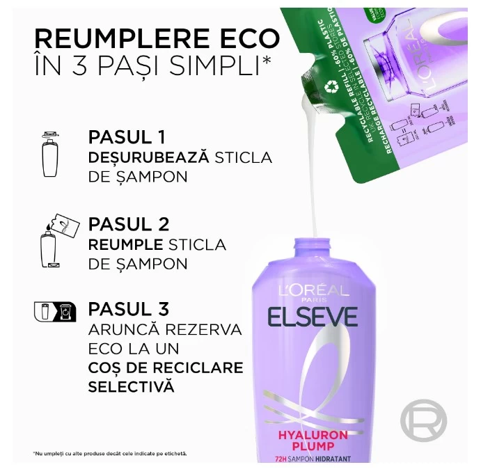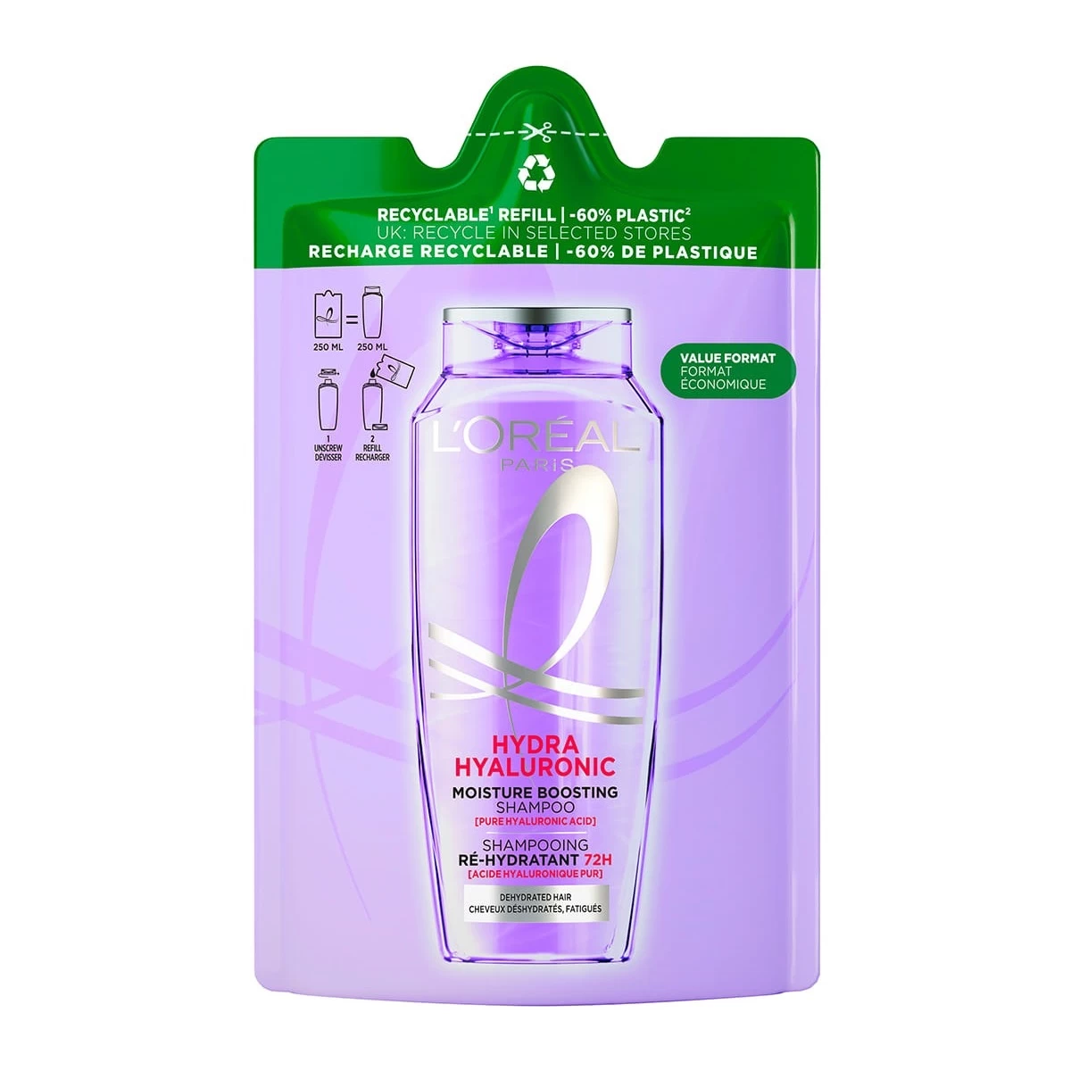 Увлажняющий шампунь L'Oreal Paris Elseve Elseve Hyaluron Plump для обезвоженных волос, эко-резерв, 250 мл
