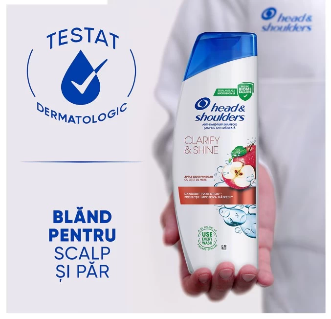 Шампунь против перхоти с яблочным уксусом Clarify & Shine, Head&Shoulders, — это косметический продукт для ежедневного ухода за волосами и кожей головы, подходящий как для женщин, так и для мужчин. Его формула разработана для бережного очищения кожи головы от загрязнений и борьбы с стойкой перхотью, поддерживая баланс микробиома кожи головы. Содержит яблочный уксус, используемый в средствах для глубокого очищения кожи головы. Действует на видимую и невидимую перхоть и помогает предотвратить ее повторное появление. Шампунь имеет сбалансированный pH, прошел дерматологические испытания и оставляет кожу головы и волосы чистыми и освеженными после каждого мытья. Свежий яблочный аромат дарит приятное ощущение свежести. Входит в категорию шампуней против перхоти и в категорию средств для глубокого очищения от производителя Head&Shoulders.