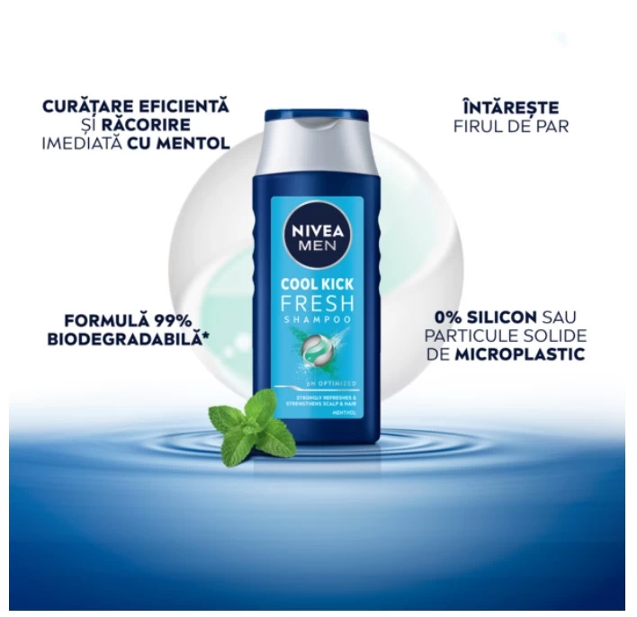 Попробуйте шампунь Nivea Men Cool Fresh для дополнительной свежести! Оптимизированный по pH шампунь с ментолом эффективно очищает и освежает кожу головы и волосы, придавая им свежесть после мытья шампунем.