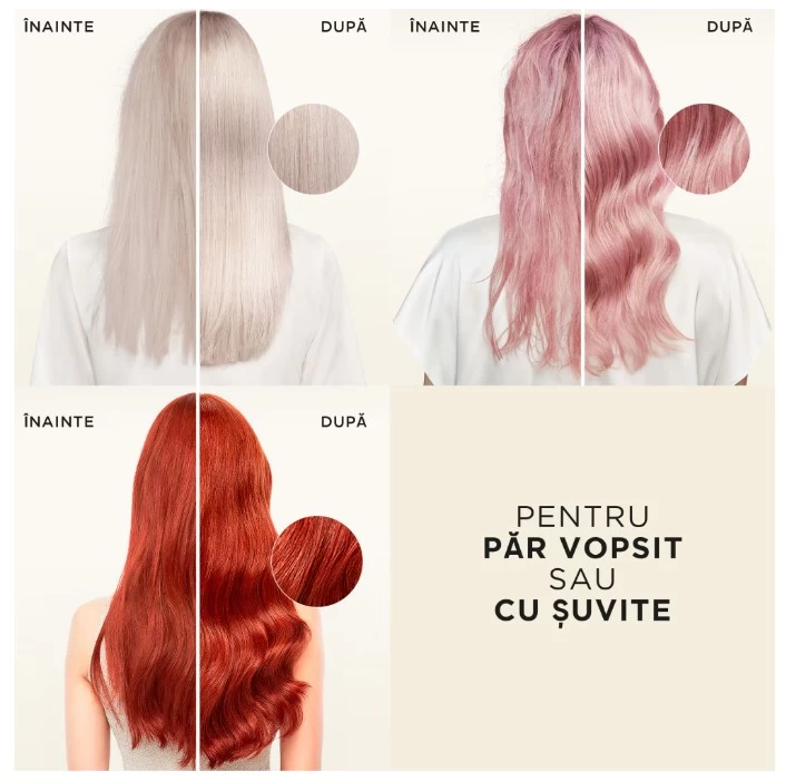 При использовании вместе с нашим бальзамом помогает восстанавливать и защищать окрашенные или мелированные волосы от повреждений, вызванных укладкой.