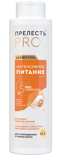 Гамма средств Прелесть PRO «Интенсивное питание» создана на основе комплекса витаминов и натуральных экстрактов 5PRO COMPLEX, которые питают и защищают волосы, дарят им здоровье и красоту.