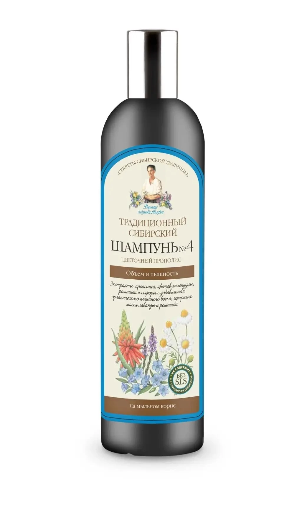 - Традиционный сибирский шампунь № 4 на основе цветочного прополиса 550мл
