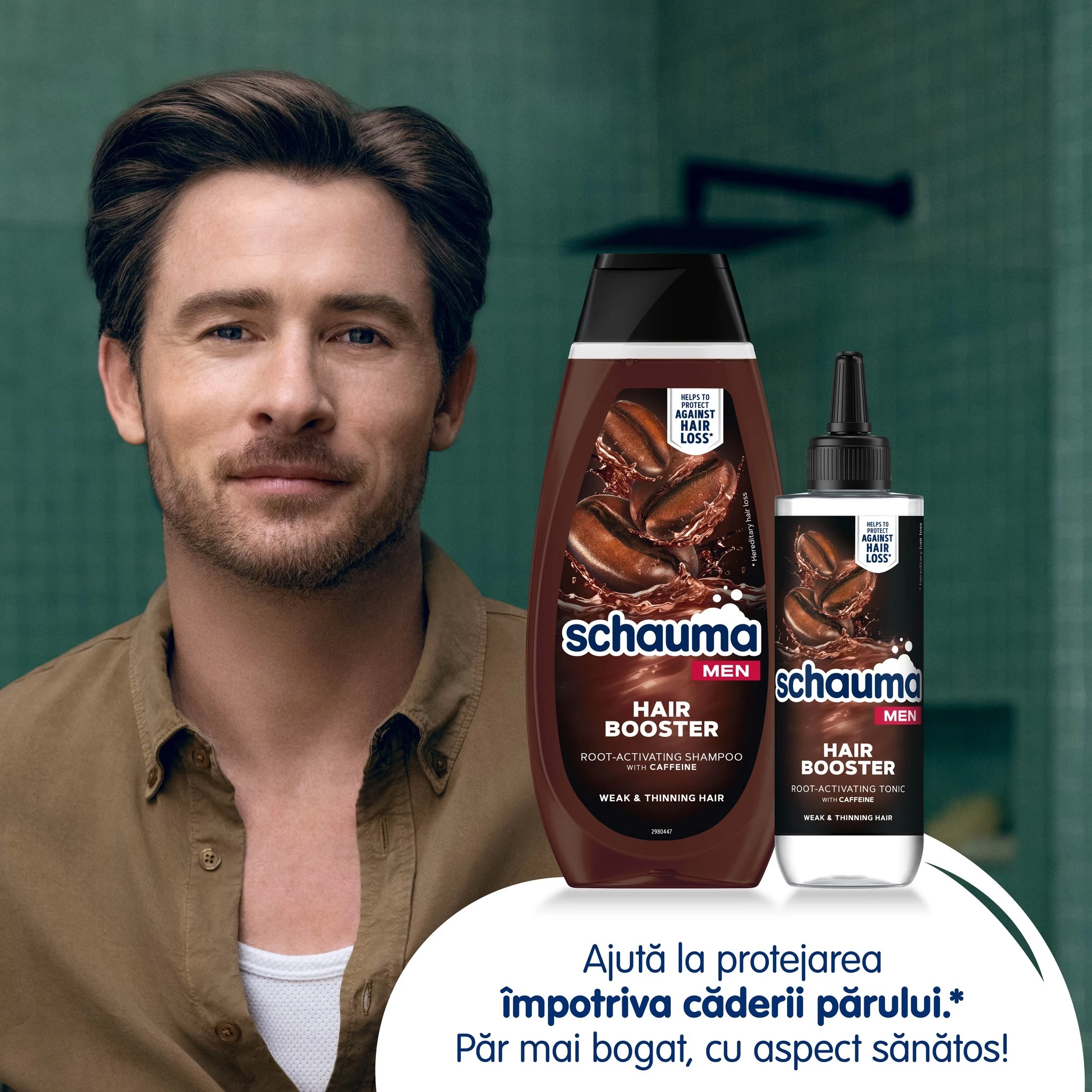 Тоник Schauma Hair Booster - тоник для активации корней с кофеином для ломких и истонченных волос. Тоник Schauma Hair Booster - с кофеином для ломких и истонченных волос Тоник Schauma Hair Booster Root Activating Tonic для ломких и истонченных волос укрепляет волосы от корней до кончиков, придавая им здоровый вид. Использование этого тоника активизирует корни волос и продлевает период их роста. Формула с кофеином и пантенолом глубоко проникает в хрупкие и истонченные волосы. Дерматологически протестирован и бережно относится к коже головы.
