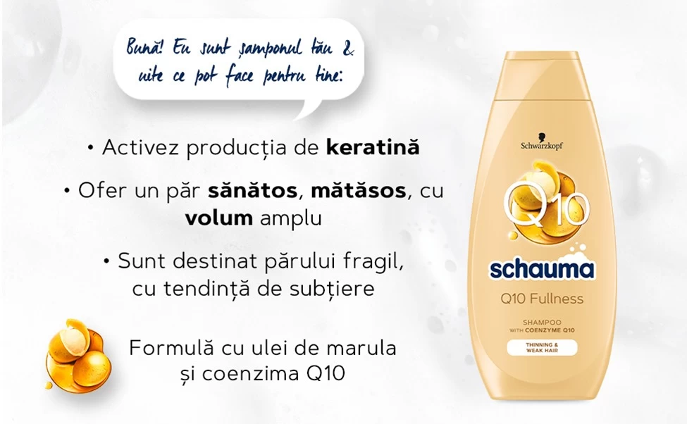Начните заботиться о красоте и здоровье вашей прически вместе с Schauma Q10 и уже скоро вы заметите, как ваши волосы приобретают невиданные ранее сияние и блеск.