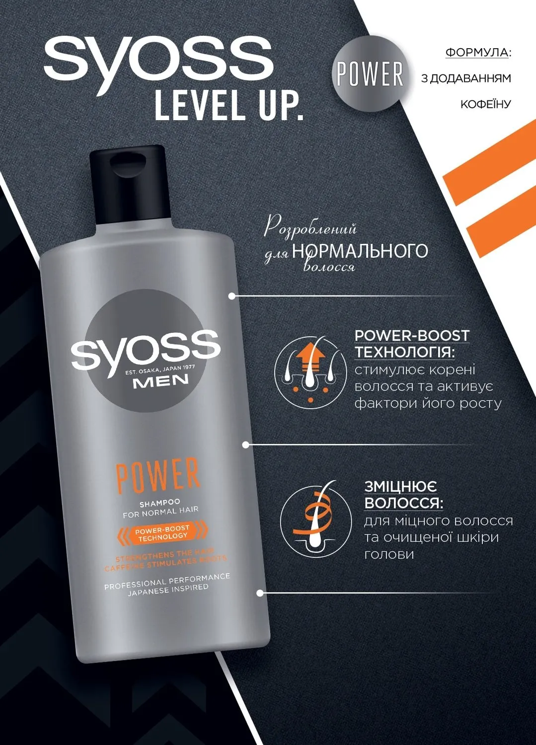 - Syoss Шампунь Men Power с Кофеином для нормальных волос 440 мл
