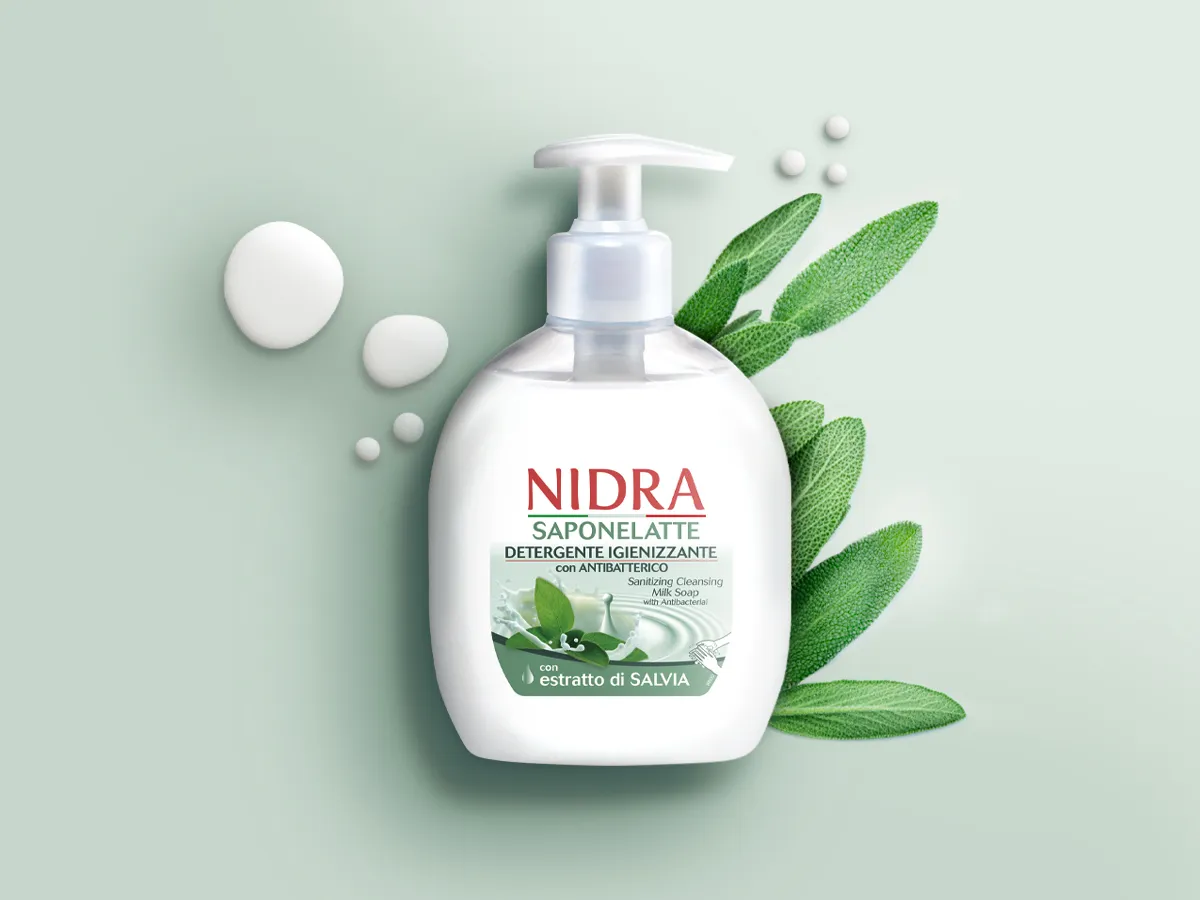 Современный итальянский бренд NIDRA является производителем натуральной косметики для тела. Ценность нашей торговой марки заключается в натуральных протеинах молока. Очищающее молочное мыло Nidra идеально подходит для ежедневной гигиены рук для всей семьи. Он обогащен экстрактом шалфея, ароматическим растением, известным своими драгоценными антибактериальными свойствами, и 100% натуральными молочными протеинами, которые помогают поддерживать водный баланс организма. Такая уходовая косметика подходит для очищения кожи рук и тела, особенно под ногтями, где скапливается большое количество бактерий. Жидкое мыло с молочным протеином защищает кожу от сухости и обеспечивает антисептический эффект, увлажняет и питает кожу рук. Наше жидкое мыло косметическое проверено дерматологами и рекомендуется к использованию всей семьи. Жидкое мыло антибактериальное содержит только проверенные и надежные компоненты, оказывающие защиту от бактерий и заботу о нежной коже.Результат: чистая кожа рук, увлажненная.Не имеет резкого запаха. Без красителей.
