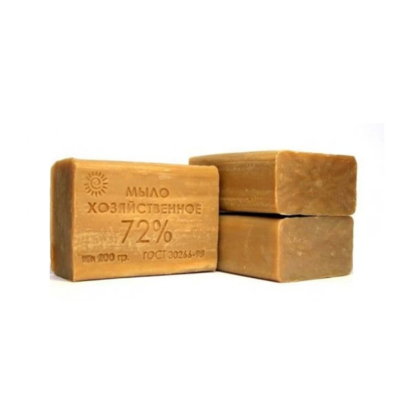 Мыло хозяйственное твёрдое 72 % представляет собой продукт, состоящий из натриевых солей жирных кислот натуральных жиров и масел (кокосового, пальмового, подсолнечного) с добавлением глицерина, пластификаторов, антиоксидантов и смягчающих веществ.