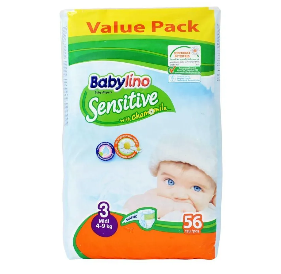 Подгузники BABYLINO Sensitive Economy N3 4-9кг, 56шт