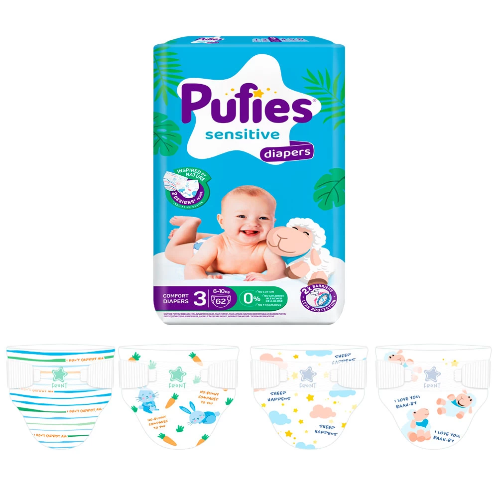- Pufies Подгузники Sensitive ML MP MIDI N3, 6-10 кг, 62 шт