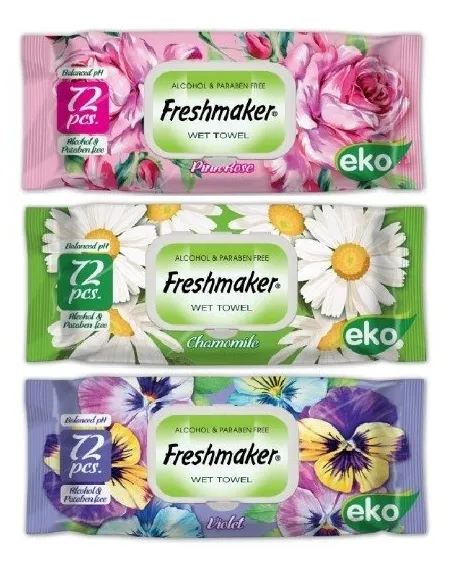 Влажные салфетки ECO Freshmaker 72 шт с крышкой и разноцветной