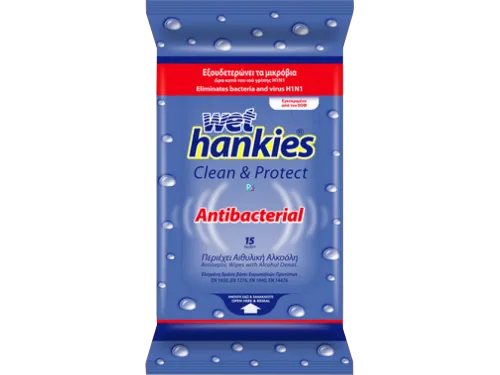 - Wet Hankies Антибактериальные влажные салфетки 15 шт.