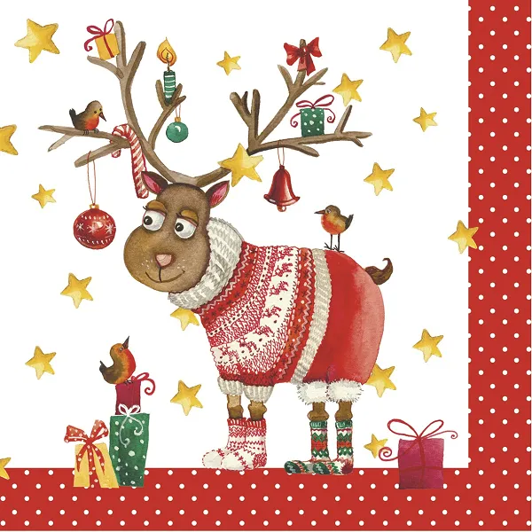 - Silken Салфетки 33*33 трехслойные с рисунком Олень с игрушкой