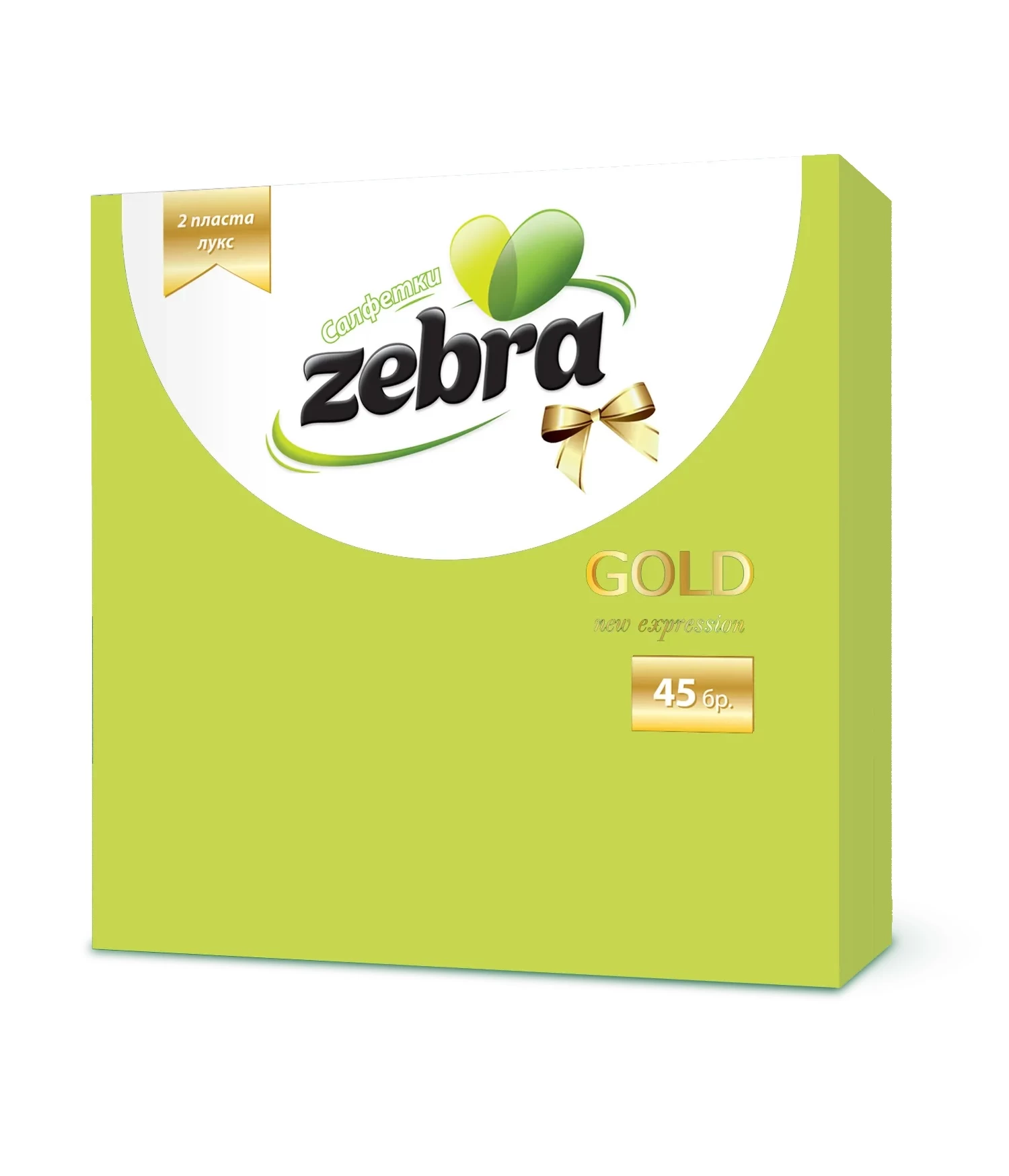 - Zebra бумажные салфетки 33x33 2 слойные 45 шт Зелёные