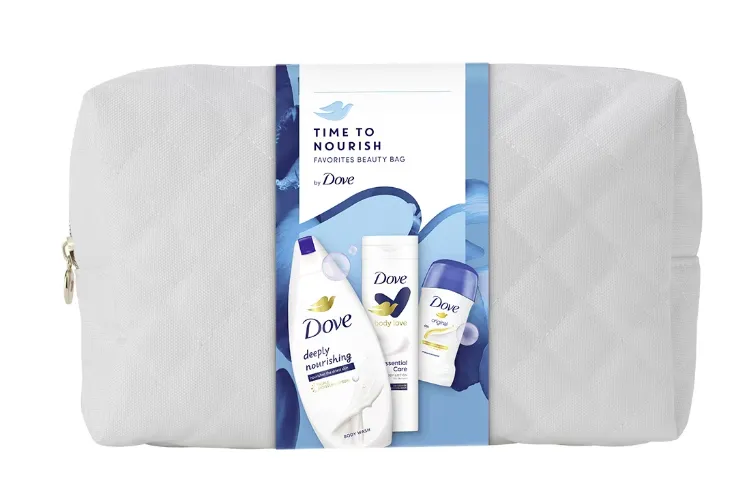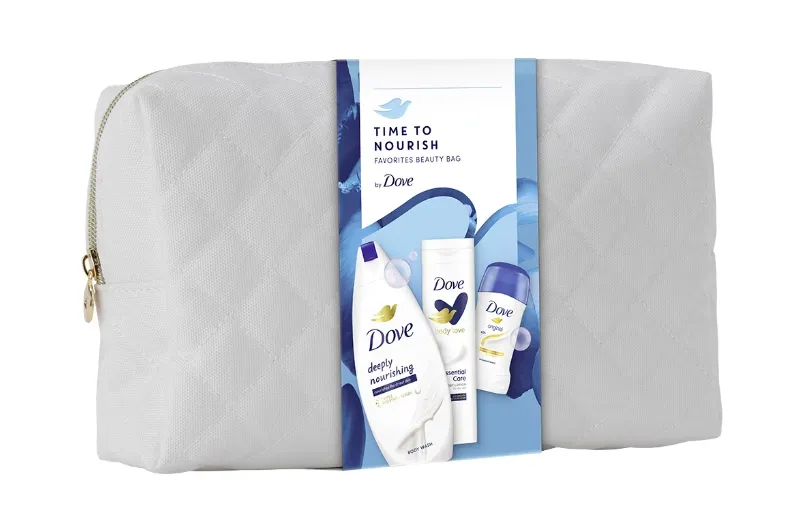 Подарочный набор Dove: гель для душа Dove Deeply Nourishing Shower Gel 250 мл + дезодорант Dove Original Deodorant Stick 50 мл + лосьон для тела Dove Essential Care Body Lotion 250 мл + подарочный пакет