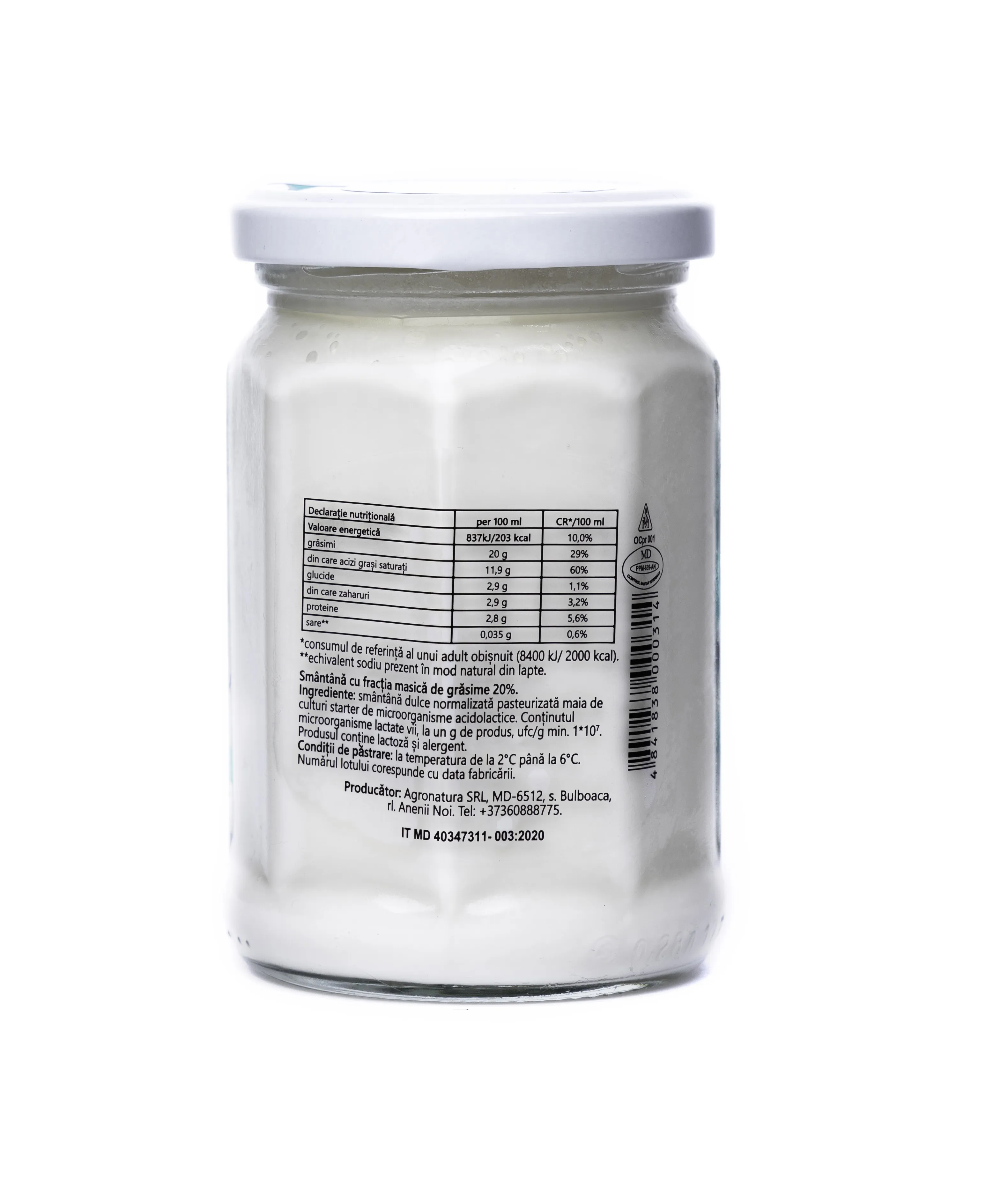 Сметана натуральная 20% жирности в стеклянной банке 290 г – идеальный выбор для придания блюдам настоящего вкуса и нежной кремовой текстуры. Изготовлена в Республике Молдова из натуральных ингредиентов, эта сметана отличается тонкой консистенцией и универсальностью – подходит для соусов, супов, десертов или употребления в чистом виде. Продукт сохраняет традиционный вкус домашней сметаны, бережно обработан для сохранения свежести и питательных свойств.