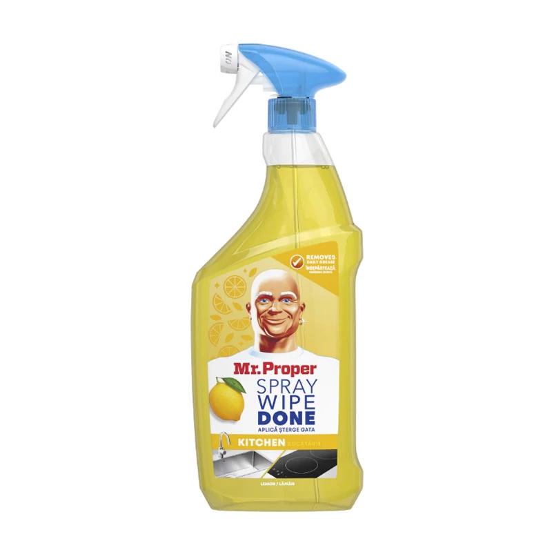 Обезжиривающий спрей для кухни Mr. Proper проникает в прижженный жир и грязь. Он идеально подходит для очистки практически любой твердой поверхности в вашей кухне благодаря своей формуле, не требующей трения, оставляя после себя только блестящую чистоту.