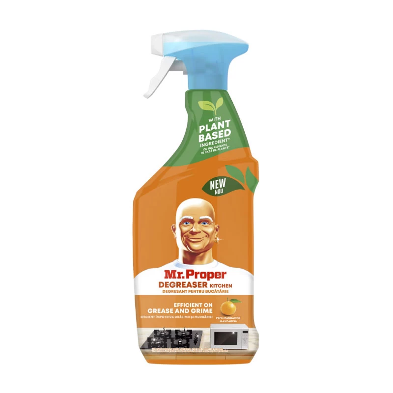 Обезжиривающий спрей для кухни Mr. Proper проникает в пригоревший жир и загрязнения. Он идеально подходит для очистки практически любой твёрдой поверхности на вашей кухне благодаря формуле без трения, оставляя после себя только сверкающую чистоту благодаря растительному компоненту в составе (21% от общего количества поверхностно-активных веществ, прошедших обработку).